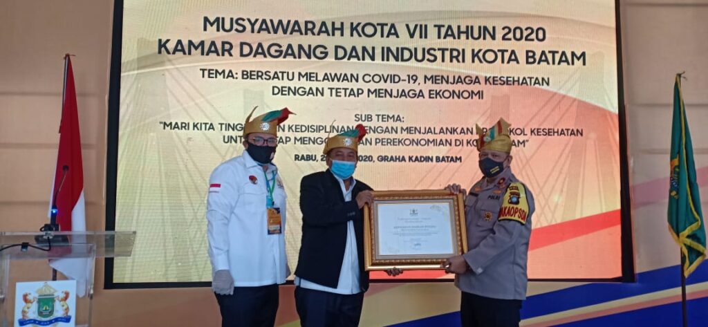 Penghargaan tersebut diberikan saat disela kegiatan pembukaan Musyawarah Kota (MUKOTA) VII Kadin Kota Batam di Kantor Kadin Kota Batam, yang dihadiri oleh Wakapolda Kepri Brigjen Pol Drs. Darmawan, M. Hum., Ketua Kadin Provinsi Kepri Akhmad Ma’ruf Maulana, Kepala Bank Indonesia, Kapolresta Barelang AKBP Purwadi W Anggoro, Wakil Walikota Batam, Ketua Kadin Kota Batam dan Komisi III DPRD Kota Batam.