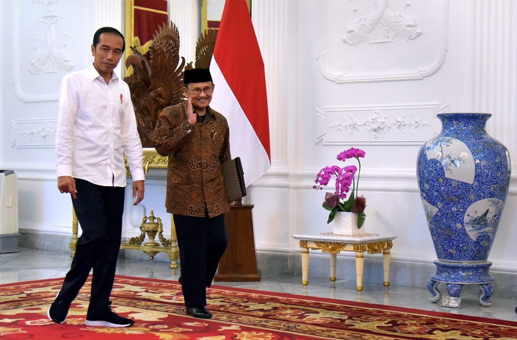 “Saya datang kemari, pertama ingin mengucapkan selamat kepada Presiden, bahwa rakyat telah menentukan agar supaya karya-karya yang beliau telah laksanakan bisa diberkelanjutan dan diamankan untuk generasi penerus. Beliau adalah ujung tombak generasi penerus,” kata Habibie di Istana Merdeka, Jakarta dilansir dari setkab, Jumat (25/5) siang.
