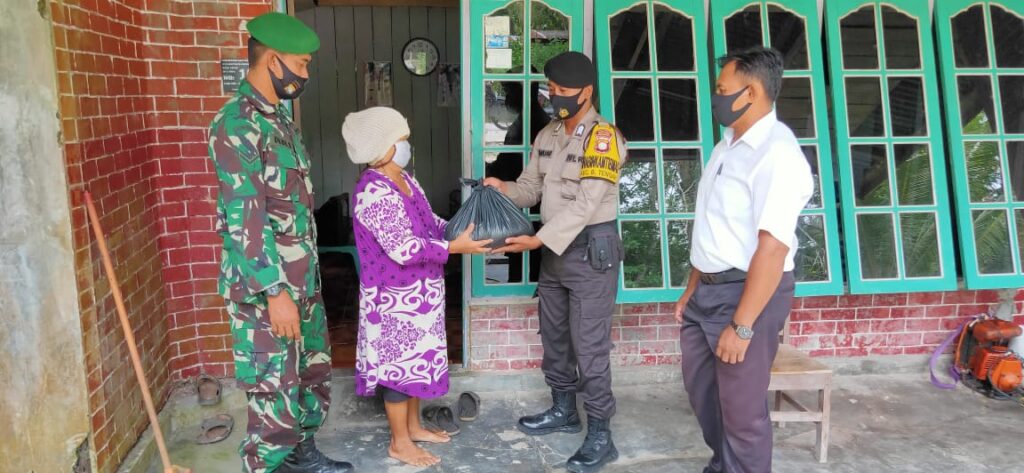 PROBATAM.CO, Batam– Bhabinkamtibmas Polsek Bunguran Timur, Desa Tapau, Kecamatan Bunguran Tengah, Brigadir Pani Januar bersama Babinsa Desa Tapau Serda Dedi Sumaedi melaksanakan kegiatan pembagian beras dari POLRI Tahap III kepada masyarakat yang tidak mampu, Rabu (26/8/2020).