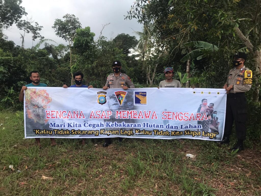 PROBATAM.CO, Batam – Blue Light Unit Sabhara Polsek Galang Polresta Barelang melaksanakan kegiatan Pencegahan kebakaran hutan dan lahan (Karhutla) di kawasan Hutan Sijantung, kecamatan Galang, Kota Batam, Rabu (12/8/2020) siang.