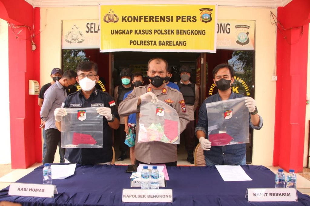 PROBATAM.CO, Batam – Kapolsek Bengkong AKP Bob Ferizal, pimpin Konferensi Pers Pengungkapan Kasus Tindak Pidana Pencurian dengan Pemberatan (CURAT) yang di dampingi oleh Kanit Reskrim Polsek Bengkong Ipda Rio Ardian, SH, serta Kasi Humas Iptu Tigor Sidabariba bertempat di Mapolsek Bengkong. Rabu (27/10/2021)