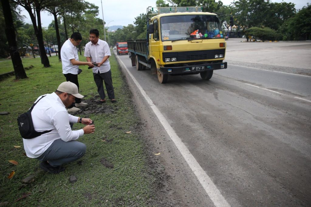 PROBATAM.CO, Batam – Setelah mendapat laporan dari masyakarat, Badan Pengusahaan Direktorat Pembangunan Prasarana dan Sarana BP Batam meninjau kerusakan pada ruas jalan di depan Indah Industrial Park pada Senin (16/12) pagi. Kerusakan jalan diketahui akibat tumpahan bahan bakar solar.