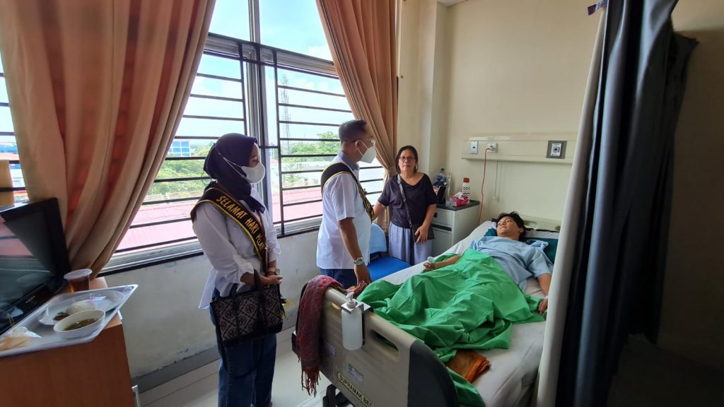 Tidak hanya menyapa peserta yang datang, BPJAMSOSTEK Cabang Batam Sekupang juga melakukan kunjungan pada pasien Kecelakaan Kerja peserta BPJAMSOSTEK yang sedang menjalani perawatan di RSUD Embun Fatimah Kota Batam.