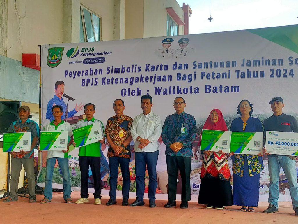 Penyerahan secara simbolis kartu peserta kepada petani Kota Batam, dalam hal ini semua petani Kota Batam terlindungi oleh BPJS Ketenagakerjaan melalui dana APBD daerah Kota Batam, dan di inisiasi oleh kepala Dinas Pertanian dan Ketahanan Pangan Kota Batam.