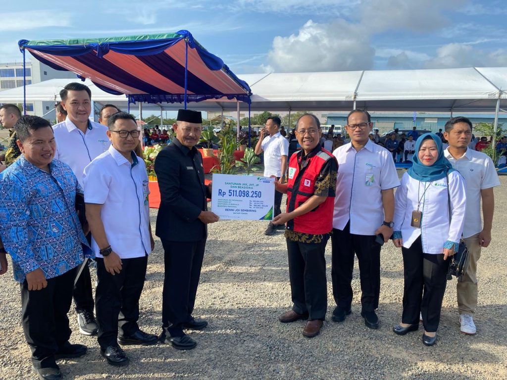 Kepala Kantor Wilayah Sumbarriau menyerahkan santunan ini sebagai bentuk perlindungan BPJS Ketenagakerjaan kepada pekerja dan keluarga mereka.