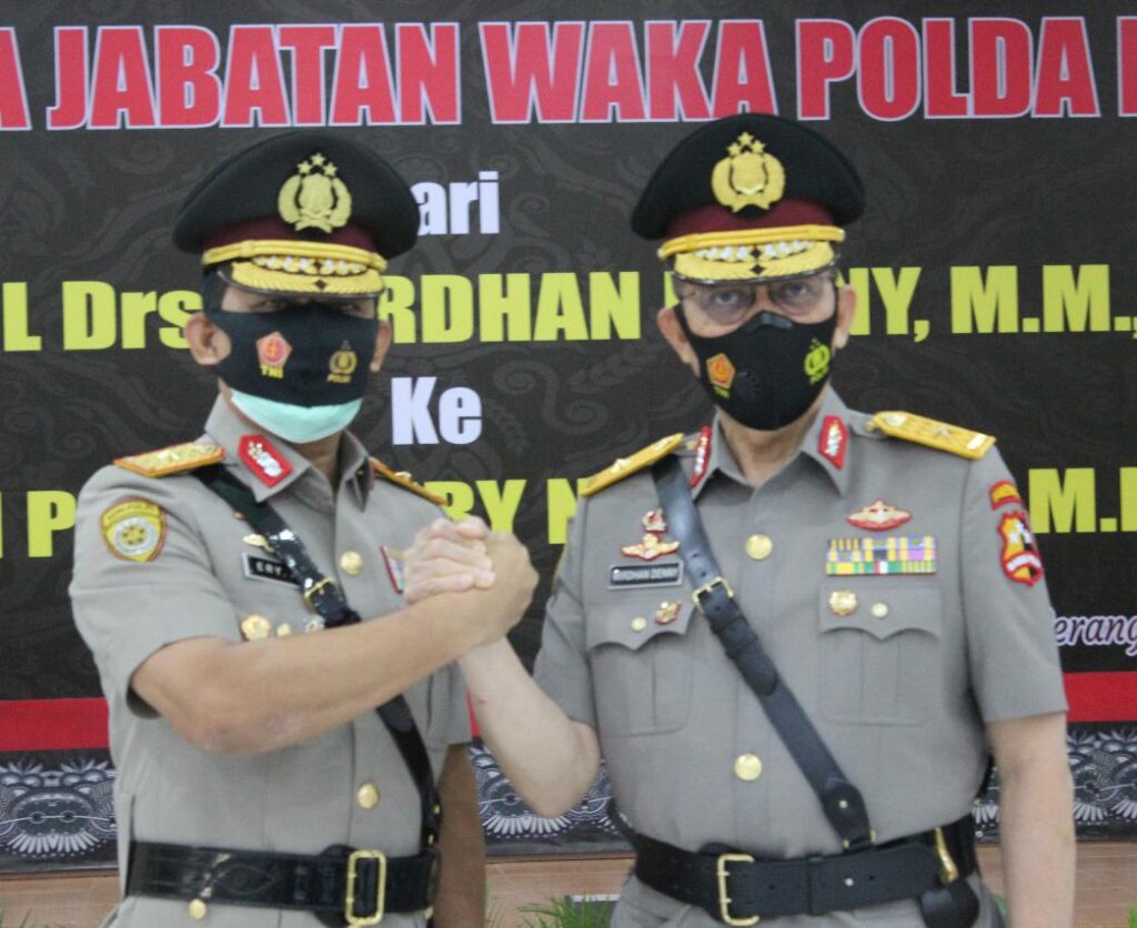Kapolda Banten, Irjen Pol Drs. Fiandar memimpin prosesi serah terima jabatan (sertijab) Wakapolda Banten di Aula Serba Guna Mapolda Banten. jumat (27/11/2020), Pukul 07:30 Wib.