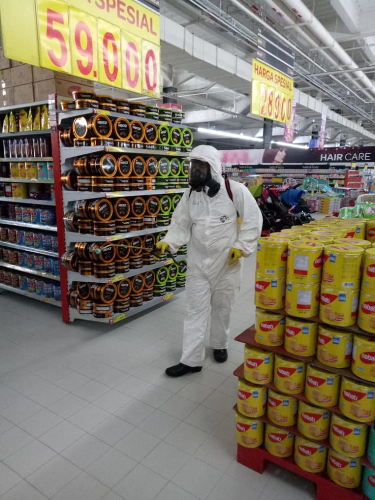 Kegiatan penyemprotan cairan Disinfektan dimulai pada jam 08.00 wib di Pusat Perbelanjaan Kepri Mall. Adapun sasaran dalam penyemprotan tersebut seluruh tempat dimulai dari Toilet umum, tempat pembuangan sampah, Kabin market, rak, lantai sampai dengan pagar besi yang berada disekitaran pusat perbelanjaan yang rawan disentuh oleh para pengunjung.