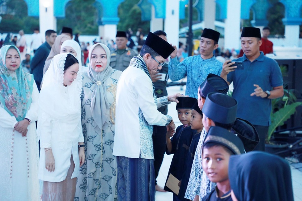 PROBATAM.CO, Batam – Ribuan warga memadati Masjid Agung Raja Hamidah, Batamcentre untuk mengikuti buka puasa bersama yang digelar Pemerintah Kota Batam, Sabtu (28/2/2026). Dalam acara itu, Wali Kota Batam, Amsakar Achmad, bersama Wakil Wali Kota Batam, Li Claudia Chandra, menyerahkan santunan untuk 1.200 anak yatim.