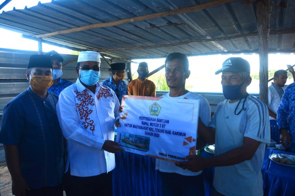 PROBATAM.CO, Karimun- Bupati Karimun, Dr. H. Aunur Rafiq, S. Sos, M. Si. menghadiri Acara Penyerahan Kapal kepada Kelompok Nelayan Berusaha Bersama Berjaya di Desa Pongkar, Jumat ( 17/7/2020 ).