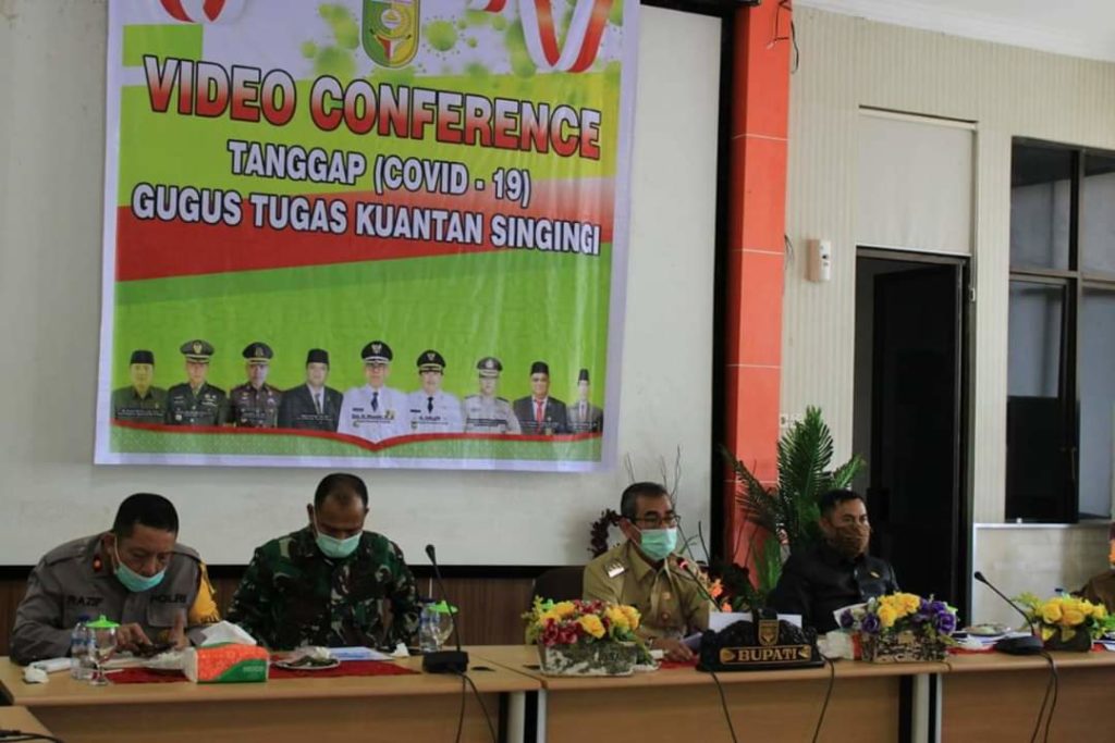 PROBATAM.CO, Kuansing– Bupati Kuantan Singingi (Kuansing), H. Mursini,menyampaikan kondisi Kuansing saat ini di tengah pandemi Covid-19 ke Gubernur Riau, Senin (13/4/2020) melalui video conference.