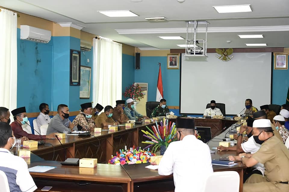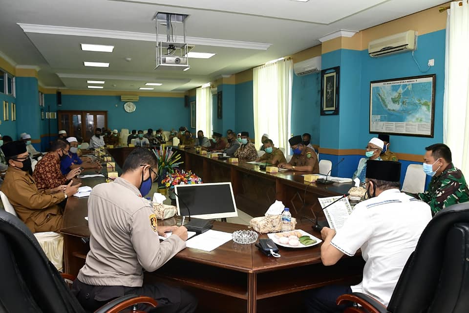 Dalam sambutannya, Hamid Rizal menyampaikan bahwa, maksud dan tujuan dari rapat kali ini untuk mengambil kebijakan dan kesepakatan bersama, terutama dalam mengakomodir, menjaga dan memenuhi aspek ibadah, sekaligus aspek kesehatan dan rasa aman kepada masyarakat, terutama dalam menjalankan syari’at, mengingat tidak berapa lama lagi Ramadhan 1441 Hijriyah akan tiba.
