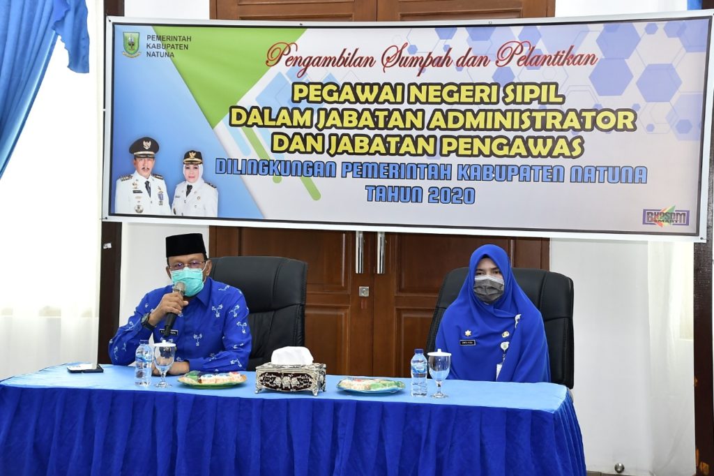 Hamid Rizal merotasi dan melantik sebanyak 15 pejabat Esselon III dan IV di lingkungan Pemerintah Kabupaten Natuna, di Gedung Daerah Natuna, Jalan Batu Sisir, Kecamatan Bunguran Timur, Ranai, Jum’at (3/4/2020) pagi.