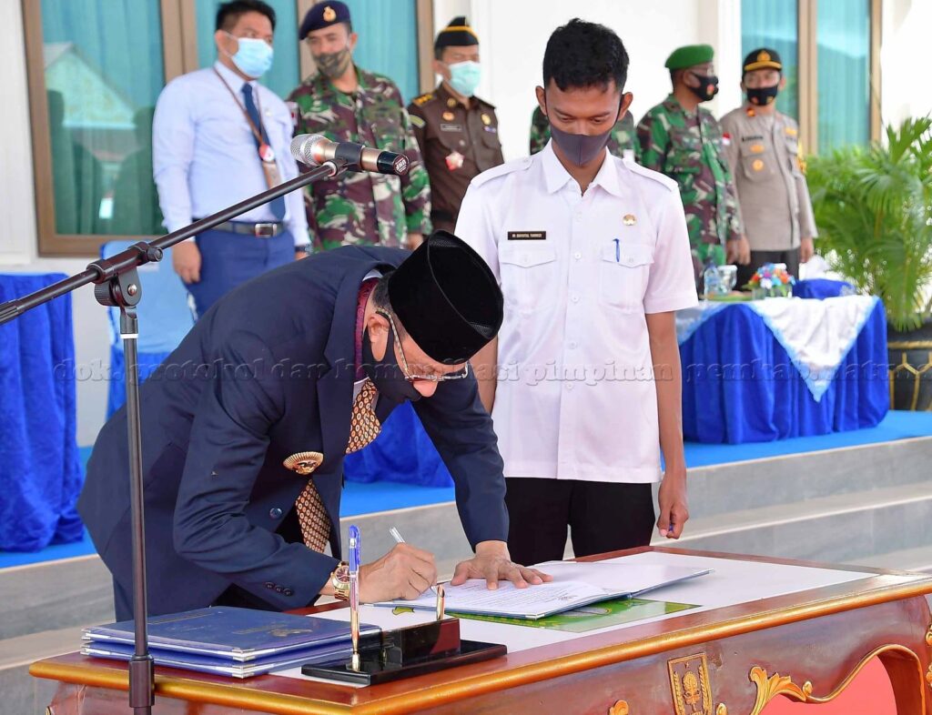 Pengambilan Sumpah dan Pelantikan Pegawai Negeri Sipil sebagai Penjabat Sekretaris Daerah Kabupaten Natuna Tahun 2020 dilaksanakan sesuai dengan protokol kesehatan dalam kondisi Pandemic Covid – 19.