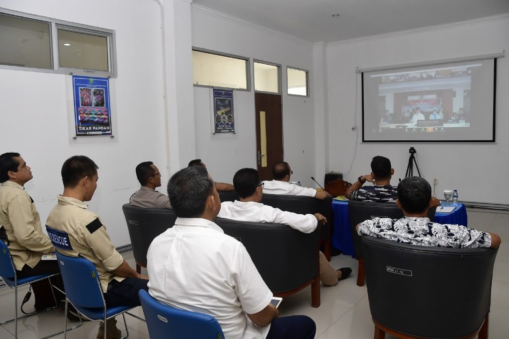 PROBATAM.CO, Natuna – Bupati Natuna, H. Abdul Hamid Rizal, melakukan Video Conference dengan Plt. Gubernur Kepulauan Riau, Isdianto, terkait Percepatan Penanganan Covid – 19 di kabupaten Natuna, Provinsi Kepulauan Riau (Kepri), di ruang rapat Kantor BP3D Kabupaten Natuna, Ranai, Minggu (5/4/2020)..