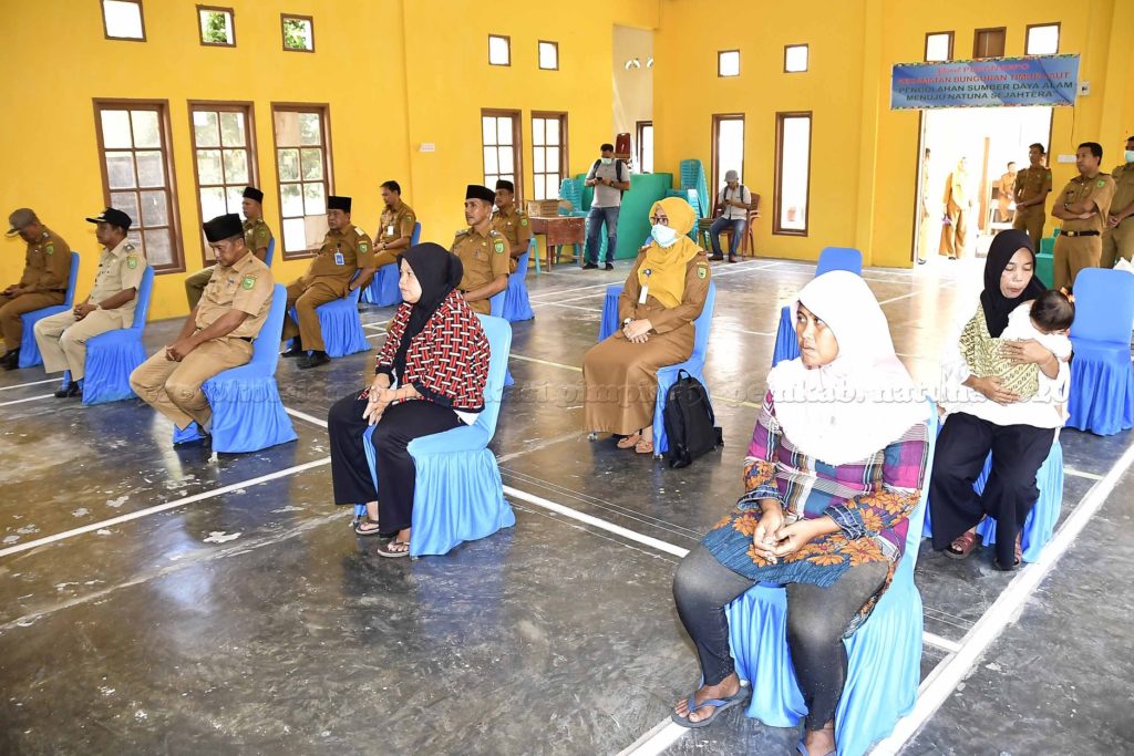Hadir pada kesempatan tersebut, Kepala Dinas Kesehatan dan Kepala Dinas Ketahanan Pangan Kabupaten Natuna, Camat dan Kepala Puskesmas Bunguran Timur Laut, Kepala Desa se-Kecamatan Bunguran Timur Laut dan masyarakat penerima bantuan yang sudah di data oleh setiap desa kecamatan Bunguran Timur Laut.