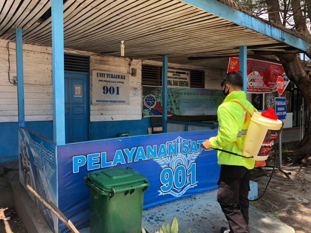 Cegah Covid-19, Polres Natuna Kembali Kembali Semprotan Cairan Disinfektan