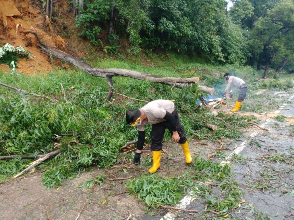 “Kita melakukan pengaturan di TKP pohon tumbang antisipasi kemacetan arus lalu lintas dan melakukan pembersihan ranting di seputaran jalan. Selama proses kegiatan terdapat dalam keadaan aman dan kondusif,” ujarnya. (iin).