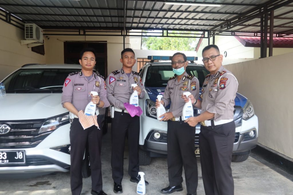 “Tidak hanya ruangan yang dibersihkan namun termasuk juga Kendaraan Dinas Operasional disemprot dengan cairan Sterilisasi Disinfektan, serta dilaksanakan juga pembagian masker kepada masyarakat yang mengurus pembayaran Pajak, pembuatan SIM dan BPKB,” jelasnya.