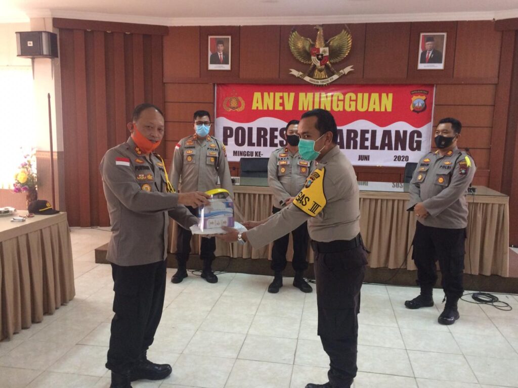 PROBATAM.CO, Batam- Kapolresta Barelang AKBP Purwadi W Anggoro menyerahkan bantuan sejumlah alat pelindung diri (APD) kepada Tim Dokter Kesehatan (Dokkes) Polresta Barelang, di lantai III, Mapolresta Barelang, Rabu (17/6/2020).