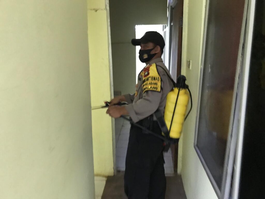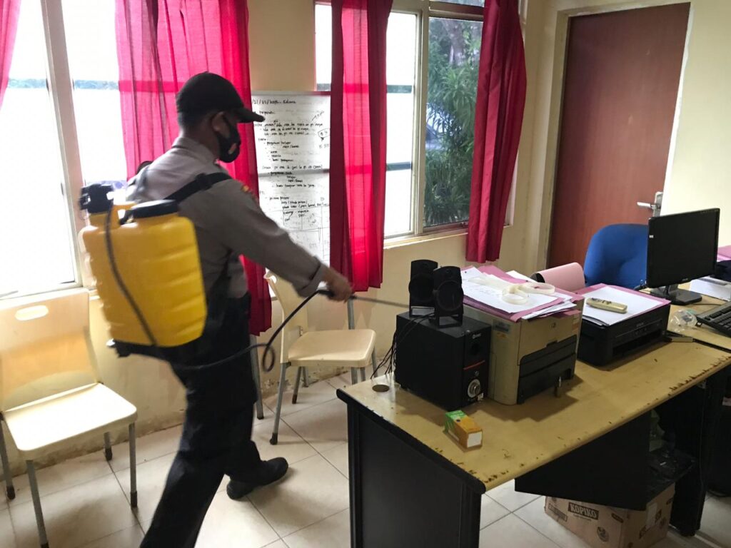 Penyemprotan cairan disenfektan dilakukan untuk mencegah penyebaran virus Covid – 19,” ujarnya.
