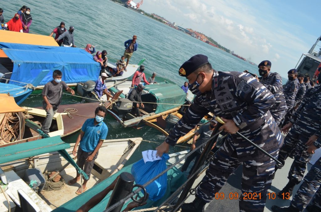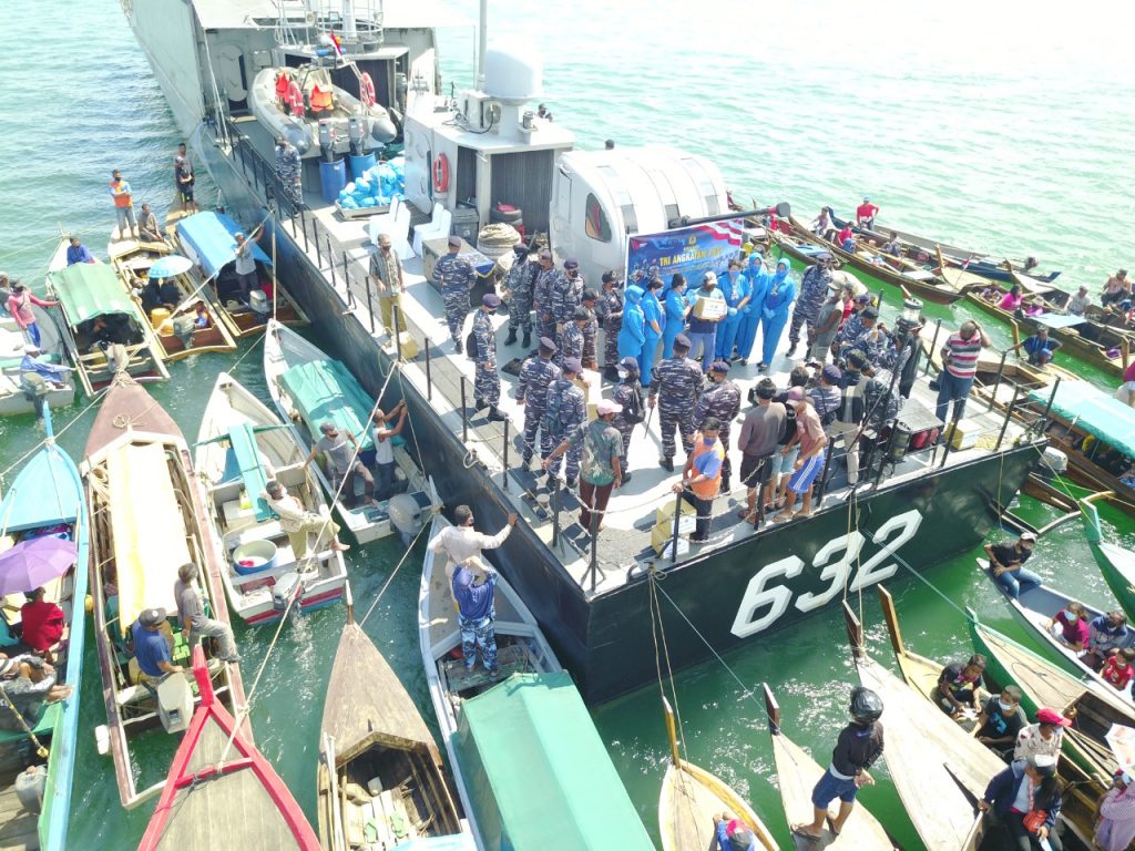 Dalam rangka memperingati HUT TNI Angkatan Laut Ke-76, Guskamla Koarmada I dan Jalasenastri Cabang 5 DJA I menyelenggarakan Bhakti Sosial berupa pembagian sembako kepada masyarakat pesisir Pulau Ngenang dan sekitarnya, Kamis (9/9/2021). (photo; dok guskamla koarmada1)
