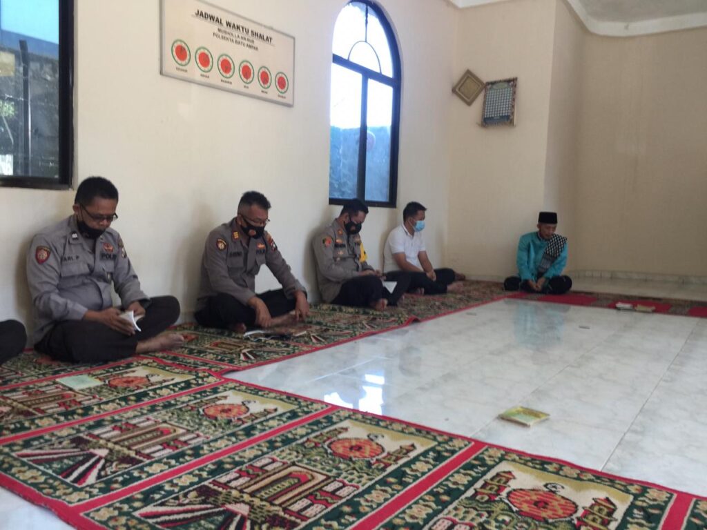 PROBATAM.CO, Batam- Dalam rangka menyambut Maulid Nabi Muhammad SAW, Kapolsek Batu Ampar bersama personil Polsek setempat mengikuti pembinaan rohani dan mental (BINROHTAL) untuk meningkatkan ketaqwaan pada Allah SWT.