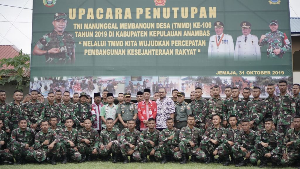 Kegiatan TMMD ke 106 di Jemaja, Anambas ini diarahkan pada kegiatan fisik yakni pembangunan infrastruktur pedesaan berupa jalan baru peningkatan badan jalan dan pembangunan nonfisik penyuluhan bela negara serta wawasan kebangsaan dan pelayanan kesehatan.