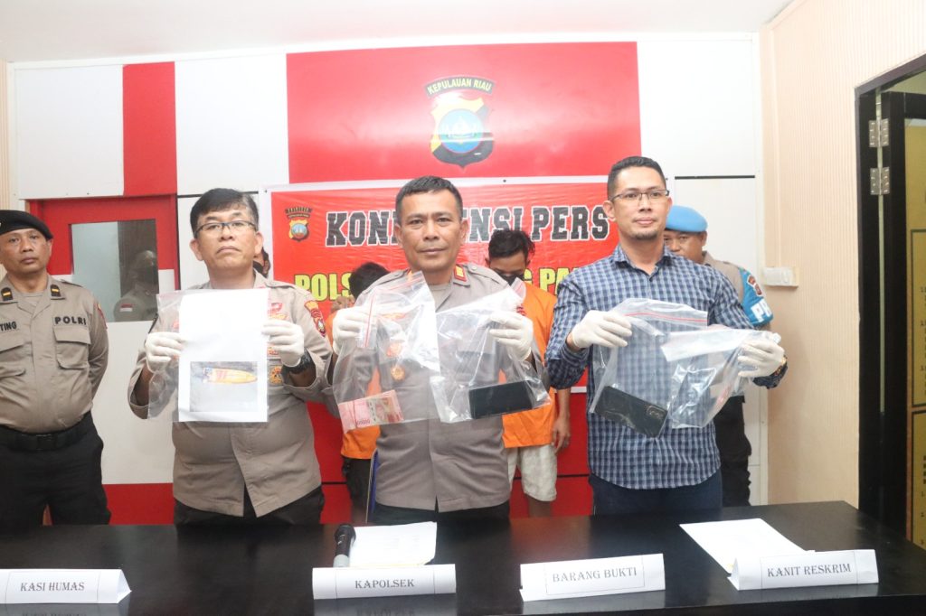 PROBATAM.CO, Batam – Kapolsek Belakang Padang AKP Parlin Tobing, SH menggelar Konferensi Pers Ungkap Kasus Tindak Pidana Pengiriman PMI Ilegal yang didampingi oleh Kasi Humas Polresta Barelang AKP Tigor Sidabariba, SH, Kanit Reskrim Polsek Belakang Padang Iptu Yelvis Oktaviano SH, MH, di Mapolsek Belakang Padang. Jumat (3/3/2023)