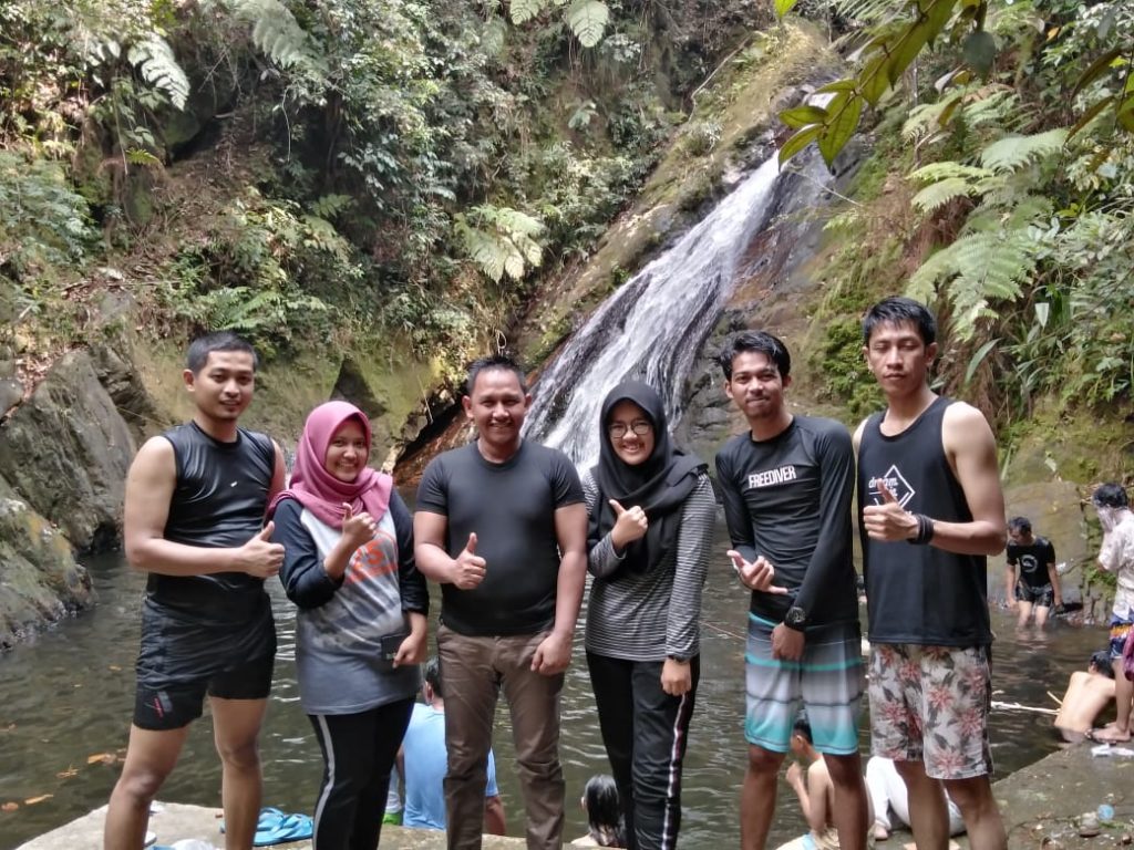 Pengunjung wisata dari luar daerah saat berkunjung ke air terjun 7 tingkat Batangkoban, Lubuk Ambacang, Hulu Kuantan. foto : probatam/dya