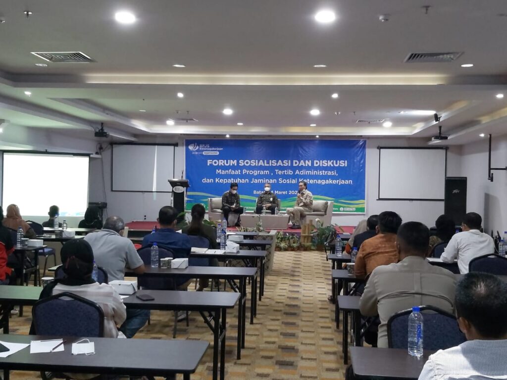 PROBATAM.CO, Batam – BPJAMSOSTEK kembali mengadakan sosialisasi terkait manfaat program kepada badan usaha yang telah menjadi peserta. Kegiatan ini diadakan di Os Style Hotel dengan mengikuti protokol kesehatan yang berlaku, seperti pengecekan suhu tubuh sebelum memasuki ruangan, wajib menggunakan masker, mencuci tangan serta duduk dengan jarak satu meter antar peserta.