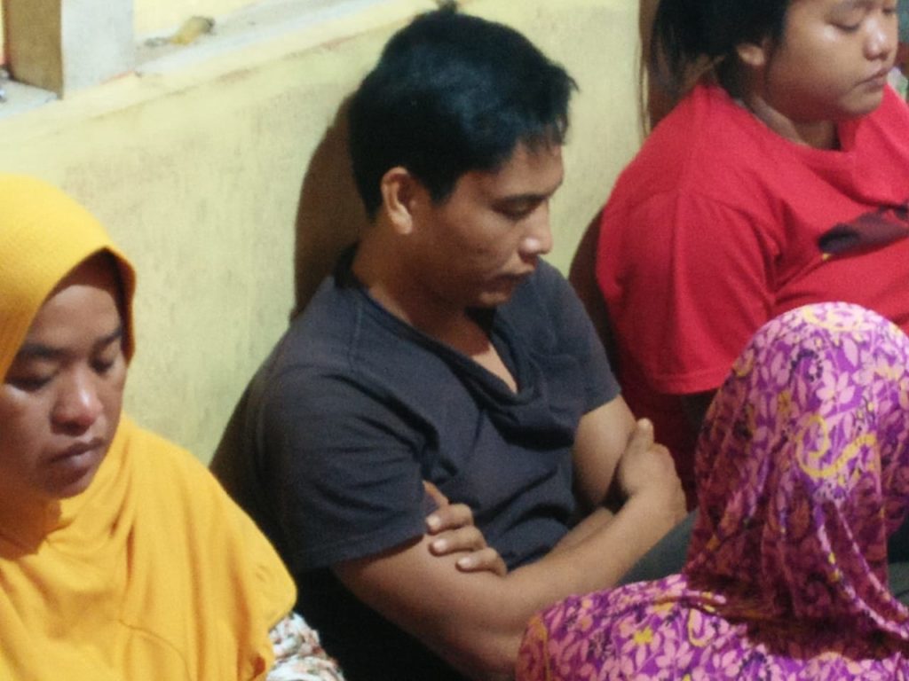 Dedi tertunduk lesu dan lemas tiba di rumahnya usai ditemukan tersesat di hutan belantara. (photo : probatam/hdr)