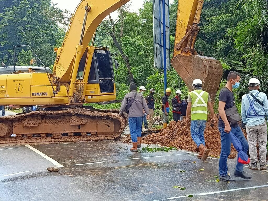 Dalam pengerjaan tersebut, tampak satu unit alat berat di kerahakan guna memperbaiki dengan melakukan penimbunan di area ruas jalan yang amblas akibat guyuran hujan deras yang melanda Kota Batam.