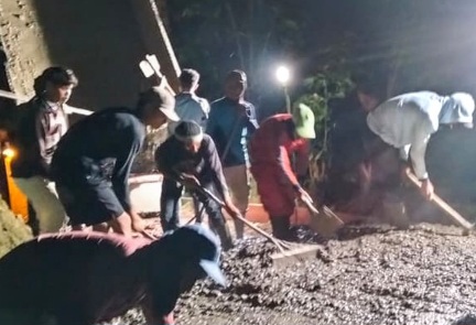 Semangat gotong royong ini, kata Danramil, tidak hanya dilakukan pada siang hari, tapi malam hari pun kita terus bekerja tanpa kenal lelah.