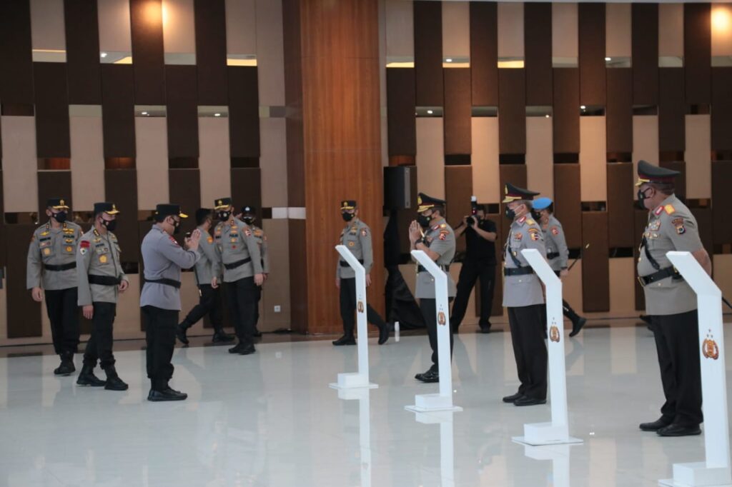 “Bahwa saya, akan setia kepada Negara Kesatuan Republik Indonesia yang berdasarkan Pancasila dan UUD tahun 1945 serta akan menjalankan segala peraturan perundang-undangan,” kata Kapolri yang diikuti oleh seluruh pejabat utama Mabes Polri, Jakarta, Rabu (24/2/2021).