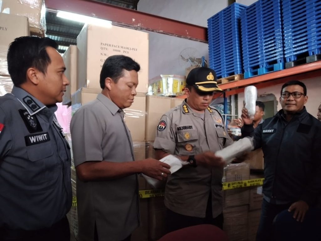 Masker ini asal dari Cina rencana mau diedarkan disini,” terang Dirkrimsus Polda Kepri, Kombes Pol Hanny Hidayat saat melakukan penggerebekan.