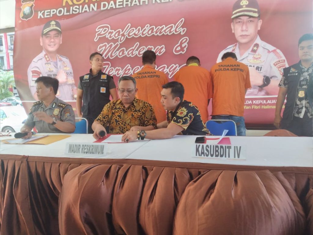 Ruslan saat memberikan keterangan kepada awak media, didampingi Kasubdit Penmas AKBP Priyo Prayitno dan Kasubdit IV Ditkrimum Polda Kepri AKBP Dhani.