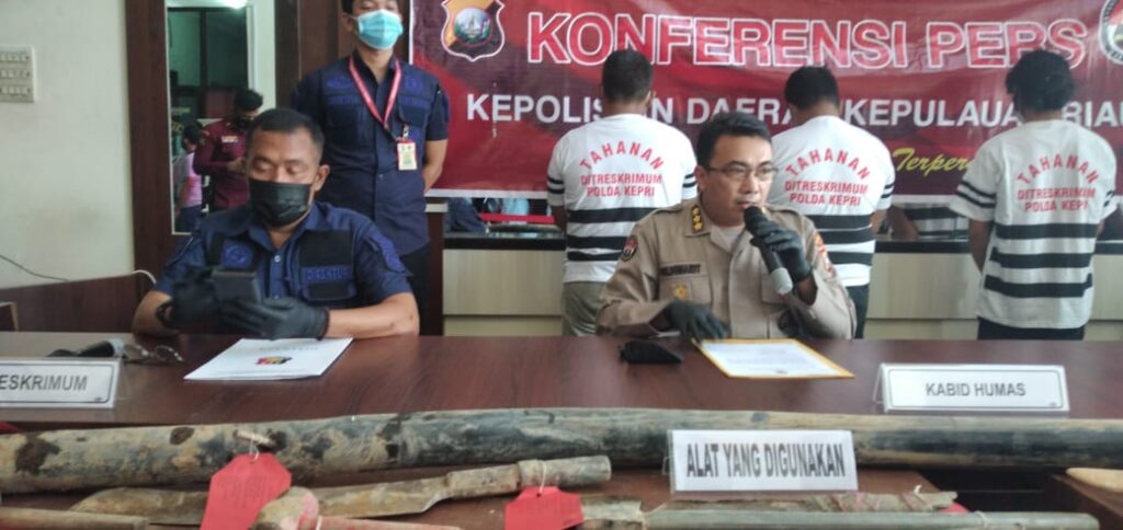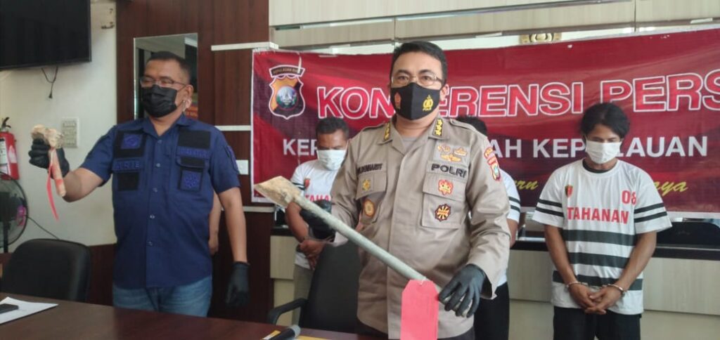 “Berawal dari informasi masyarakat bahwa adanya tindak kejahatan di wilayah Nagoya tepatnya di jalan Imam Bonjol depan mall Nagoya Hill, yang berhasil kita amankan 3 orang pelaku dari 7 orang pelaku yakni MKS, MSN dan IP,” ujar Dirkrimum Polda Kepri, Kombes Pol Arie Dharmanto didiampingi Kabid Humas Polda Kepri, Kombes Pol Harry Harry Goldenhardt di lobi Ditreskrimum Polda Kepri, Rabu (23/12/2020).
