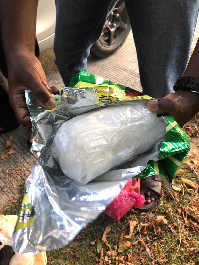 Saat dilakukan penggeledahan ditemukan satu bungkus Plastik coklat berisi plastik teh cina berwarna hijau yang di dalamnya terdapat sekitar 1 Kg Narkotika jenis sabu.