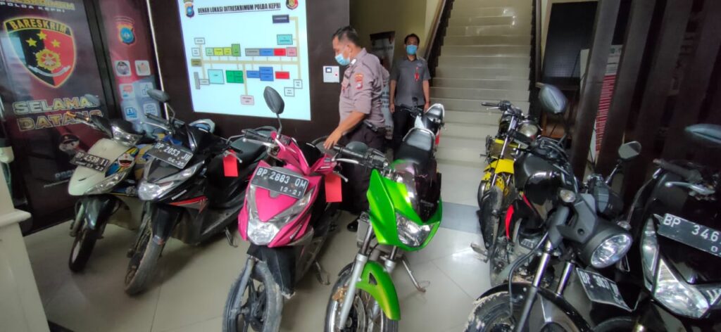 Sebanyak 10 (sepuluh) barang bukti sepeda motor berbagai merk turut serta diamankan. Demikian terungkap dalam ekpose ke media massa di Mapolda Kepri, Selasa (3/11/2020)