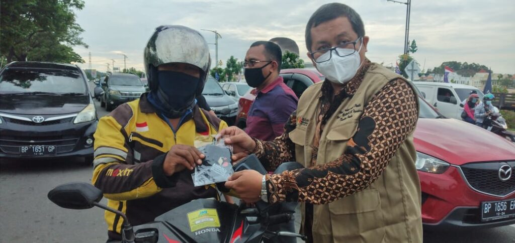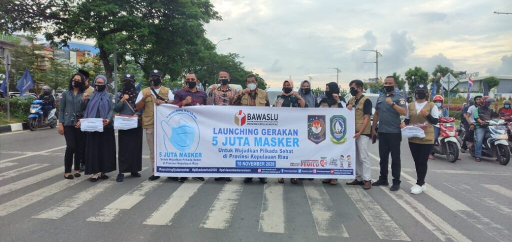 “Dalam rangka mensukseskan program pemprov yaitu launching 5 Juta Masker yang hari ini secara resmi dilaunching oleh Menteri Dalam Negeri (Mendagri), Muhammad Tito Karnavian, di Hotel Radisson Batam. Kita Bawaslu ikut berpartisipasi dengan membagikan masker di traffic light,” ujar Koordinator Divisi Hukum, Humas, dan Data dan Informasi Bawaslu Provinsi Kepri, Indrawan Susilo Prabowoadi.