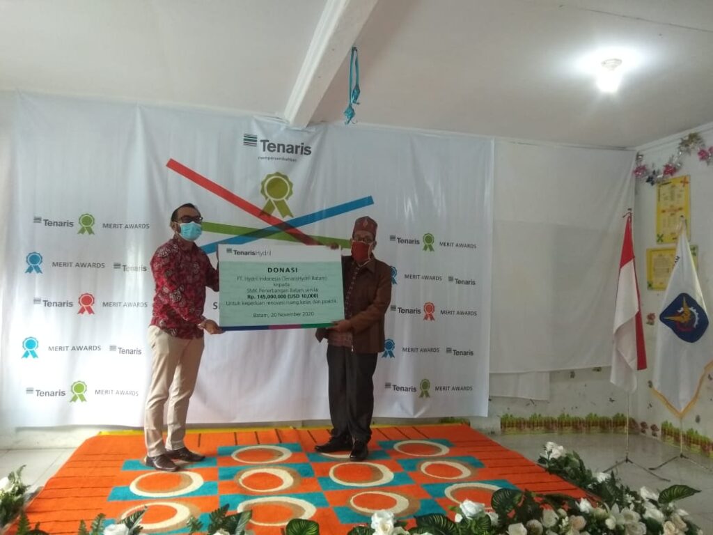 PROBATAM.CO, Batam – TenarisHydril Batam (PT Hydril Indonesia) menyerahkan bantuan donasi berupa uang tunai total sebesar Rp 419 juta rupiah dan Merit Award kepada sembilan (9) sekolah di Batam untuk renovasi insfratruktur sekolah.