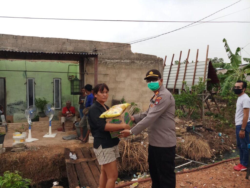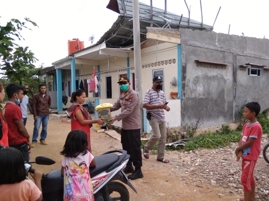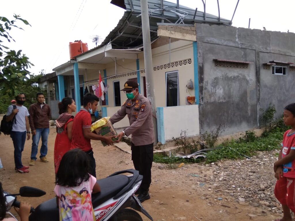 Selanjutnya Kapolsek Bengkong AKP Yuhendri Januar, SH, M.hum memberikan bantuan berupa sembako kepada sejumlah warga yanh terkena musibah angin puting beliung tersebut.