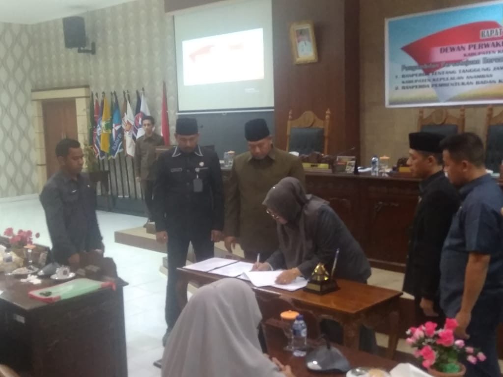 Disetujuinya dua Ranperda itu menjadi Perda ditandai dengan penandatanganan antara DPRD Anambas dengan Bupati Anambas, Abdul Haris.