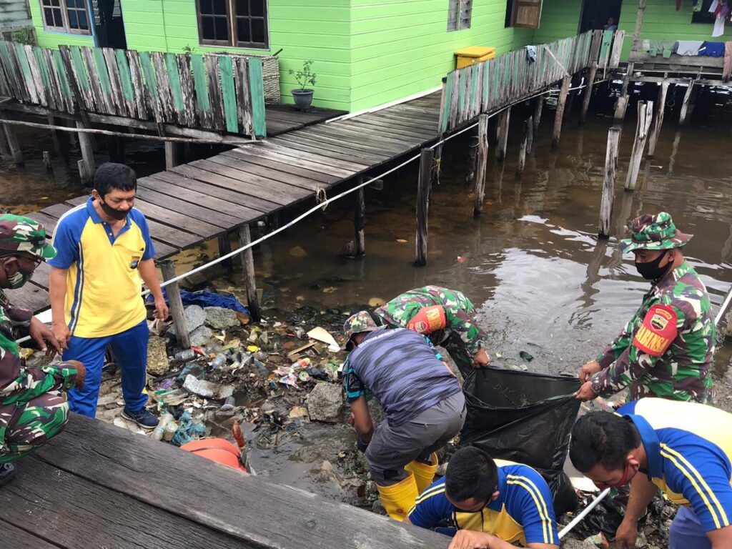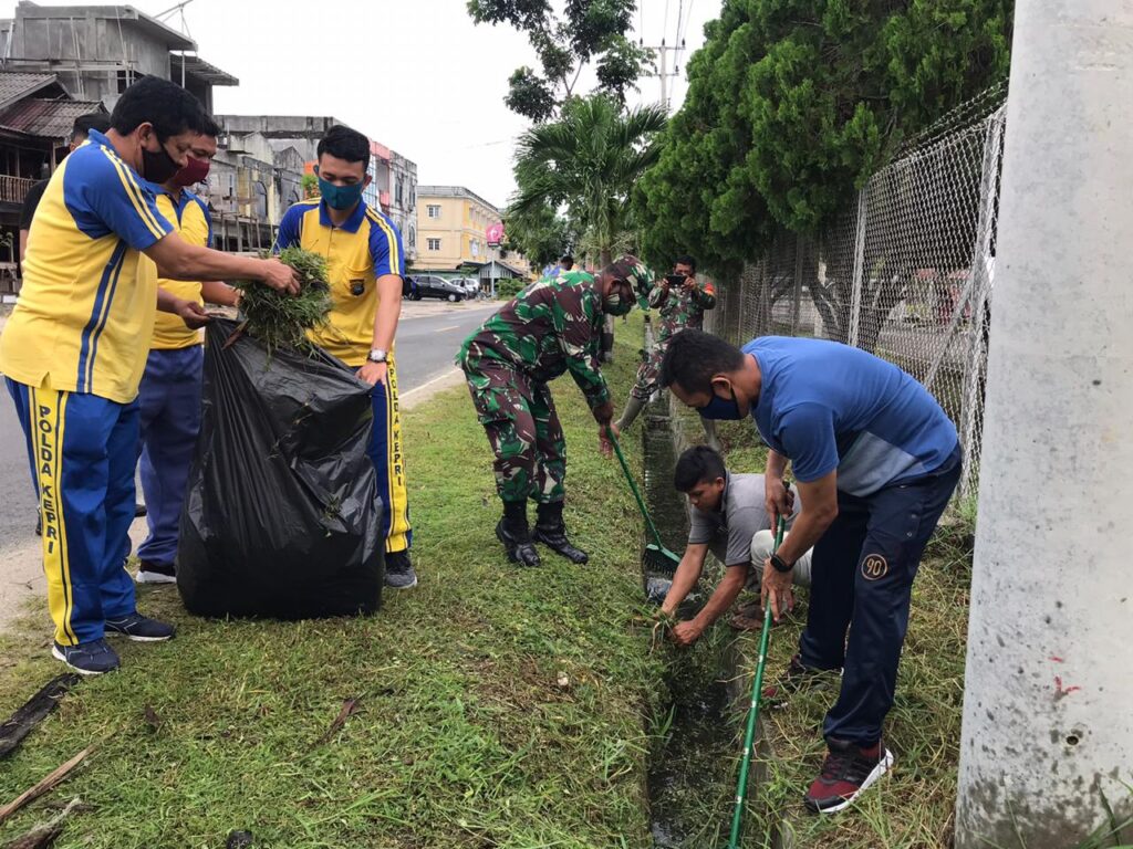Dalam pelaksanaan kegiatan ini, Personil TNI – Polri dibantu oleh masyarakat sekitar dan Selama kegiatan Gotong Royong berjalan lancar, aman dan kondusif. (r/iin).