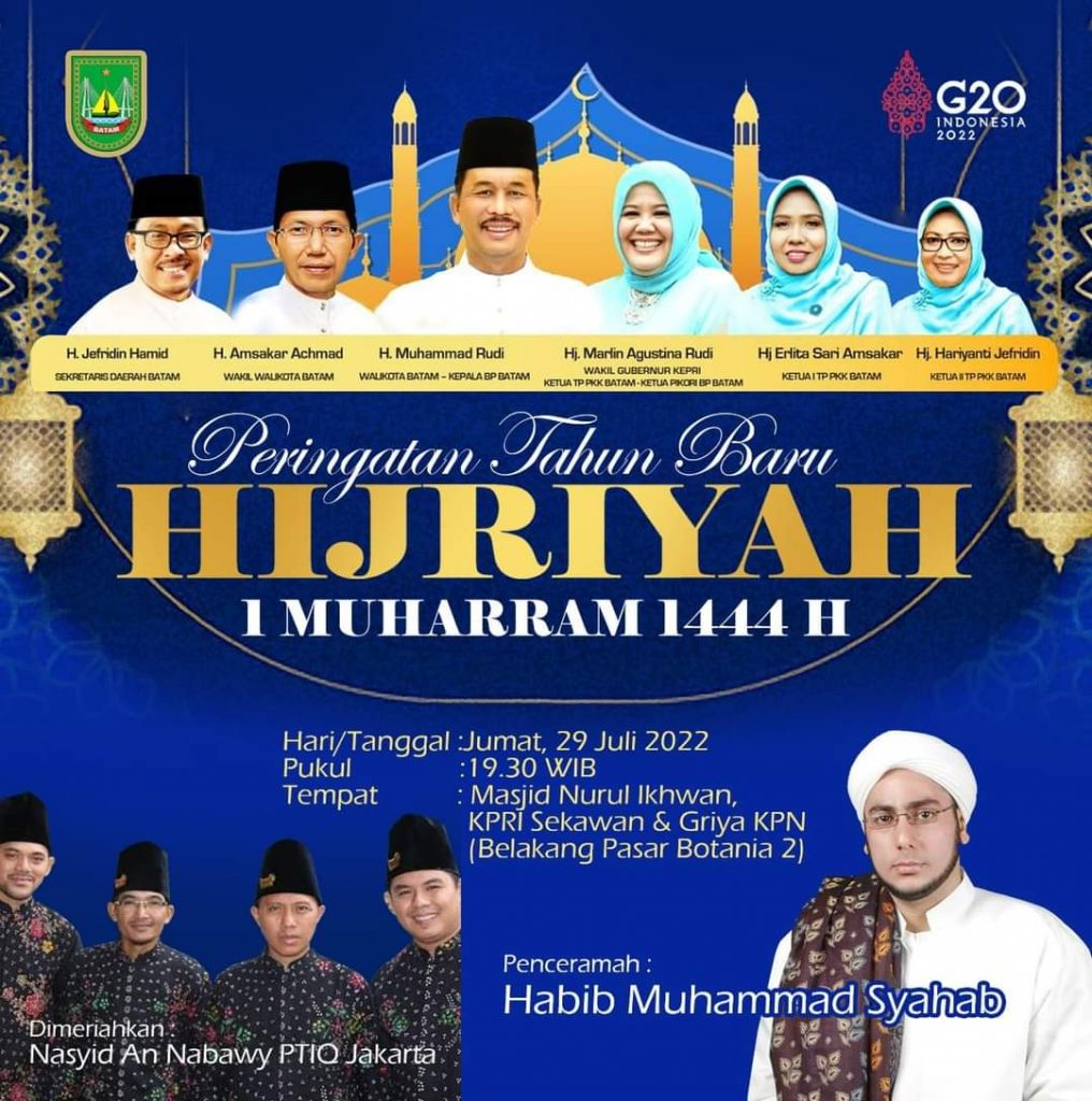 Kepala Dinas Kominfo Kota Batam, Azril Apriansyah mengatakan peringatan 1 Muharram 1444 Hijriah akan dimeriahkan oleh Nasyid An Nabawy PTIQ Jakarta.
