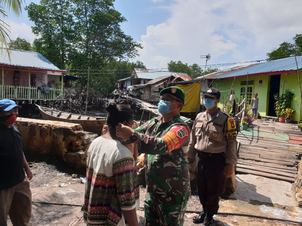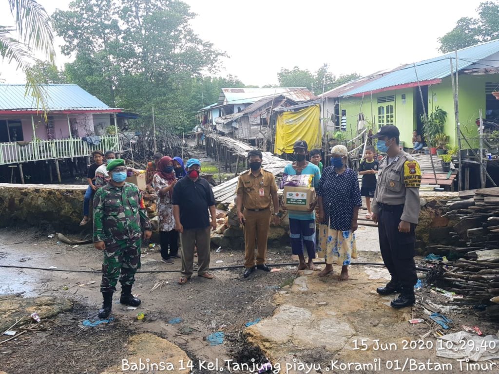 PROBATAM.CO, Batam- Aparat TNI dan Polri, Hari ini, Senin (15/6/2020) mengulurkan tangannya dengan memberikan bantuan sembako kepada masyarakat korban angin puting Beliung, di Kampung Tua Bagan, Tanjungpiayu, kecamatan Sei Beduk, Kota Batam.