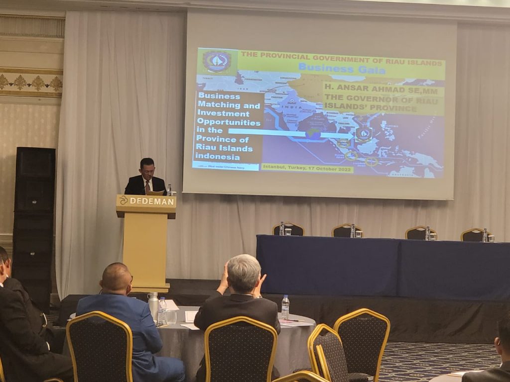 Dalam acara yang bertajuk Business Forum Meeting (Supply Chain Opportunities in Indonesia’s Free Trade Zone) yang digelar Kementerian Koordinator Bidang Perkonomian RI di Ballroom Dedeman Hotel, Istanbul, Senin (17/10/2022), Gubernur Ansar memaparkan tentang potensi investasi di Kepri dihadapan Menteri Perindustrian Republik Turki dan 50 orang pengusaha Turki.