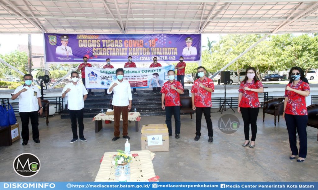 Masker bantuan ini disampaikan ke Gugus Tugas Percepatan Penanganan Corona Virus Disease (Covid-19) Kota Batam di Dataran Engku Putri, Rabu (22/4/2020).