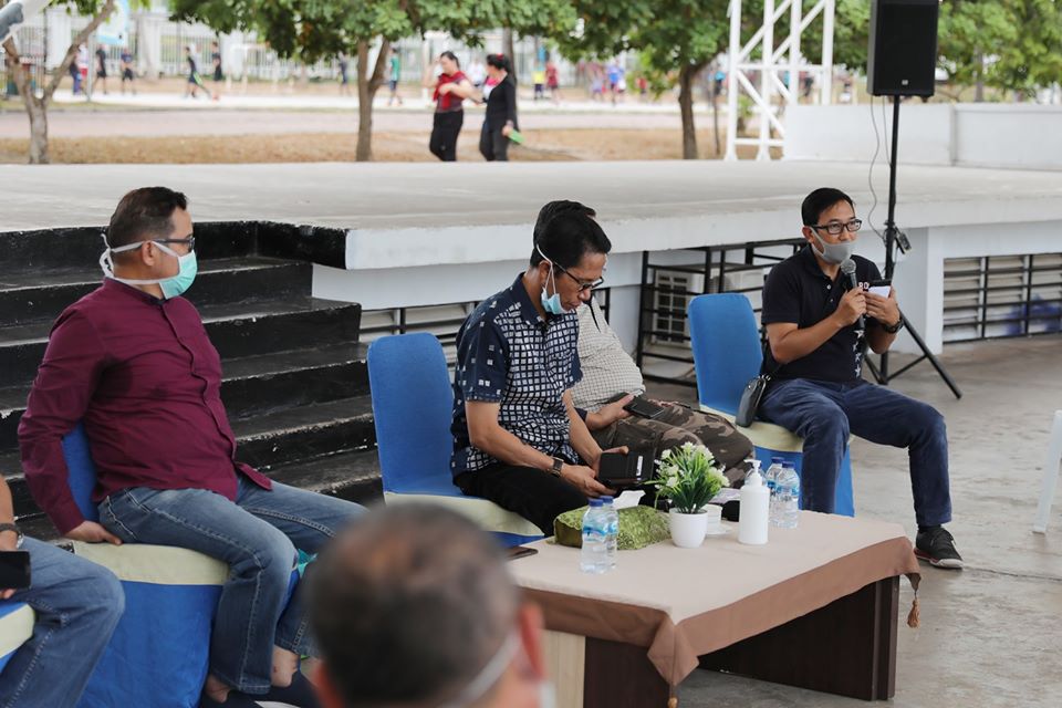 PROBATAM.CO, Batam – Gugus Tugas Percepatan Penanganan corona virus disease (Covid-19) Kota Batam melakukan rapat untuk memonitor dan mengevaluasi kegiatan satgas Kecamatan, di ruang terbuka Panggung Utama Dataran Engku Puteri, Sabtu (21/3/2020) sore.