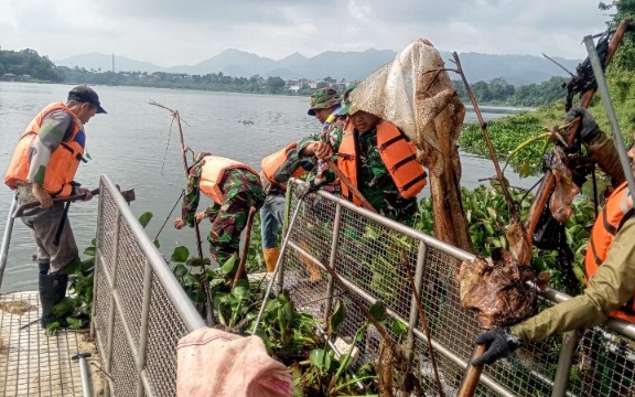 “Dampak pertumbuhan eceng gondok ditambah dengan banyaknya sampah plastik juga streofom kiriman dari hulu sangat mengganggu kondisi air di sungai Citarum Saguling,” ujar Dansektor 4.